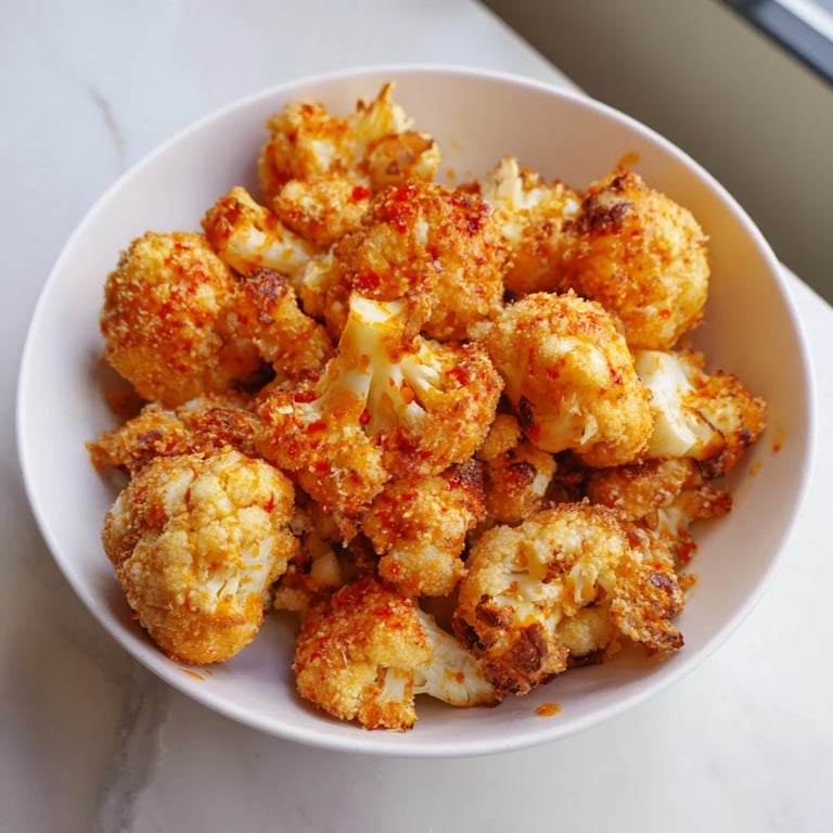 Pin It I grabbed a head of cauliflower on a whim one Tuesday because it was on sale, and honestly had no plan for it. My friend had mentioned buffalo cauliflower once, so I figured why not try it in the air-fryer I barely used. The smell that filled my kitchen that night—garlicky, spicy, crispy—made me wonder why I'd ever bothered with frozen appetizers. I ate half the batch standing at the counter before I even plated them. Now it's the recipe I make when I want something indulgent without the guilt.