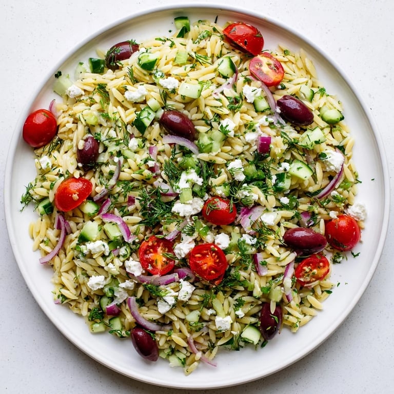 Pin It The kitchen window was open that June afternoon, and I could hear the neighbors laughing in their yard while I drained a pot of orzo over the sink. I'd promised to bring something easy to the block party, but I wanted it to feel special. This salad came together in less than half an hour, and by the time I carried it outside, the feta was still cold and the lemon dressing smelled like summer. Someone asked for the recipe before they'd even finished their first bite.