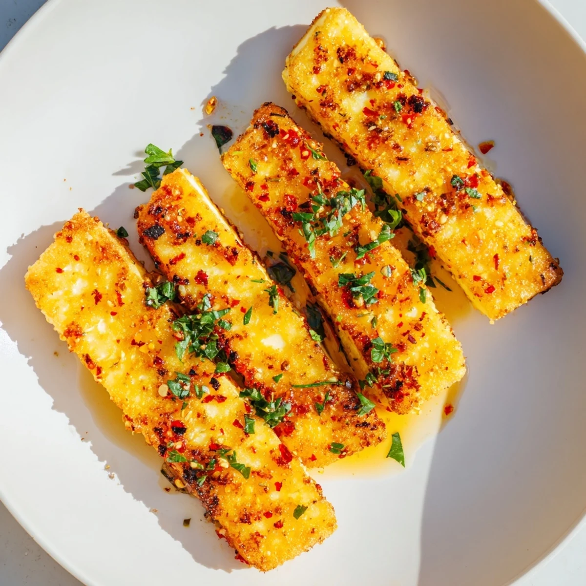- Add the halloumi in a single layer and listen for the sizzle. Don't crowd the pan, and resist the urge to flip constantly—2–3 minutes per side until the edges turn golden and crispy is all it takes.