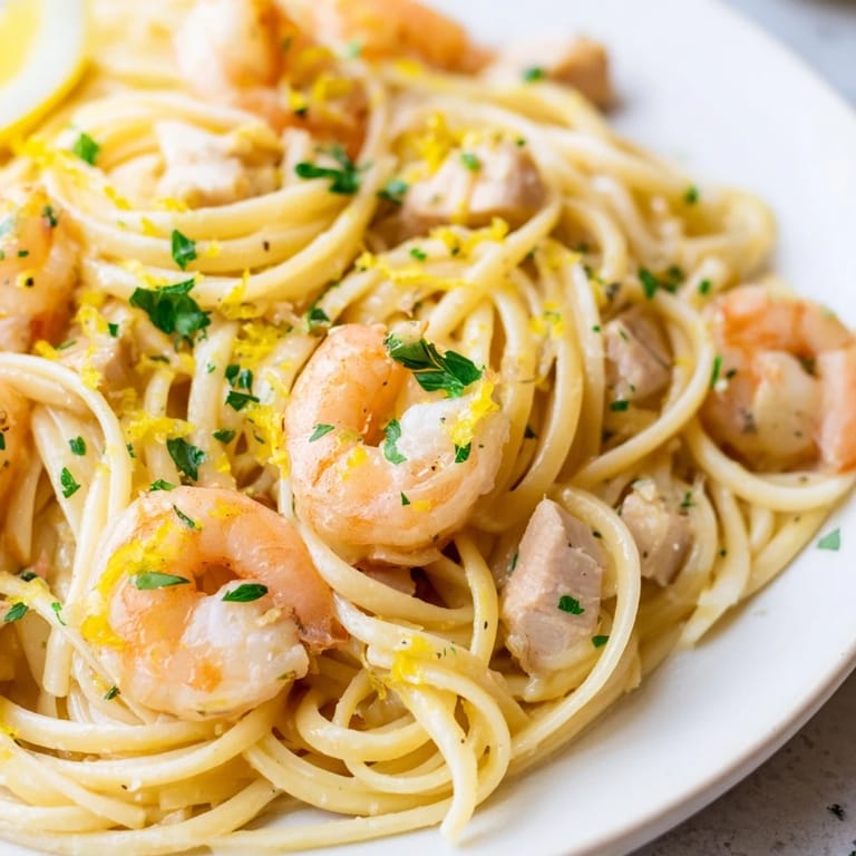Pin It This pasta has become my comfort food for everything from bad days to celebrations. Something about the combination of tender shrimp, juicy chicken, and bright lemon sauce just makes everything better. My partner now asks for it by name whenever they have had a long week.