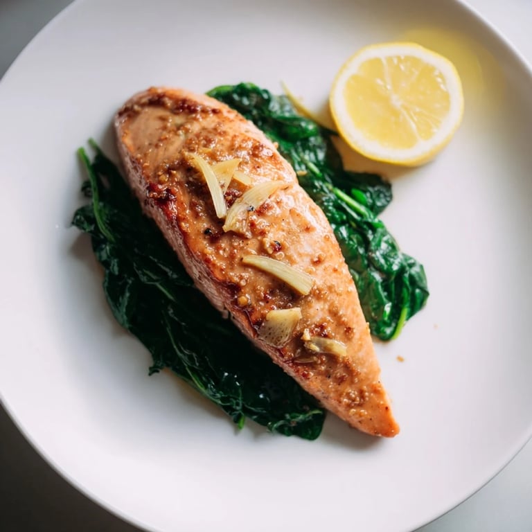 Pin It This Miso Salmon on Sautéed Spinach is a masterclass in balanced flavor, combining the deep, savory notes of white miso with the fresh zest of ginger and garlic. The salmon fillets are glazed to perfection, resulting in a succulent texture with a beautifully caramelized exterior. Served atop a vibrant bed of wilted spinach, this Japanese-inspired main course is as nutritious as it is sophisticated, offering a high-protein meal that comes together in just 30 minutes.
