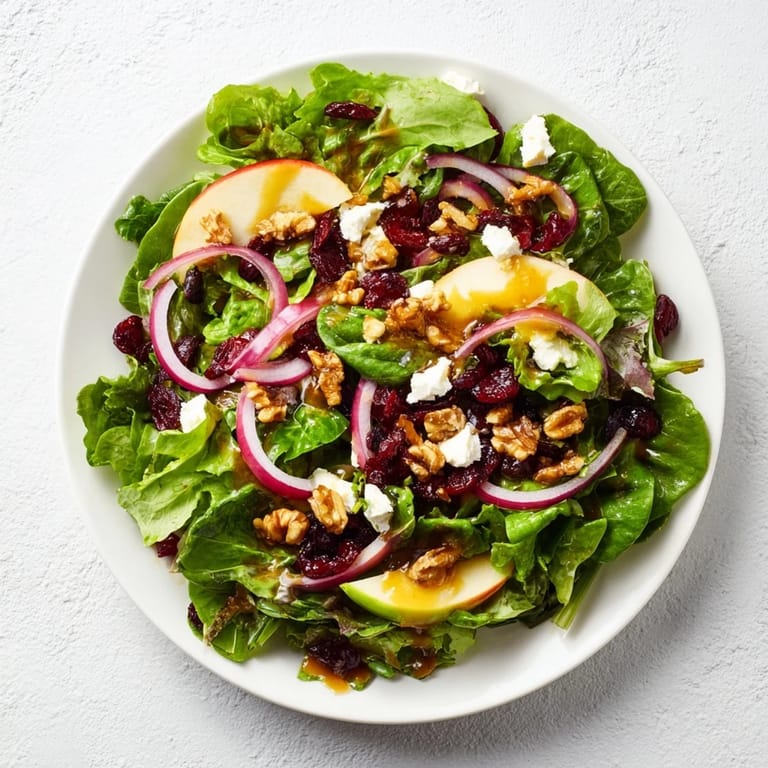 Pin It I threw this salad together one December afternoon when unexpected guests called to say they were stopping by. The fridge had leftover greens, a bag of cranberries I'd bought for baking, and some walnuts in the pantry. What started as improvisation turned into something people asked me to make again every holiday season. The colors alone feel like a celebration, and the tart-sweet-crunchy contrast keeps everyone coming back for seconds.